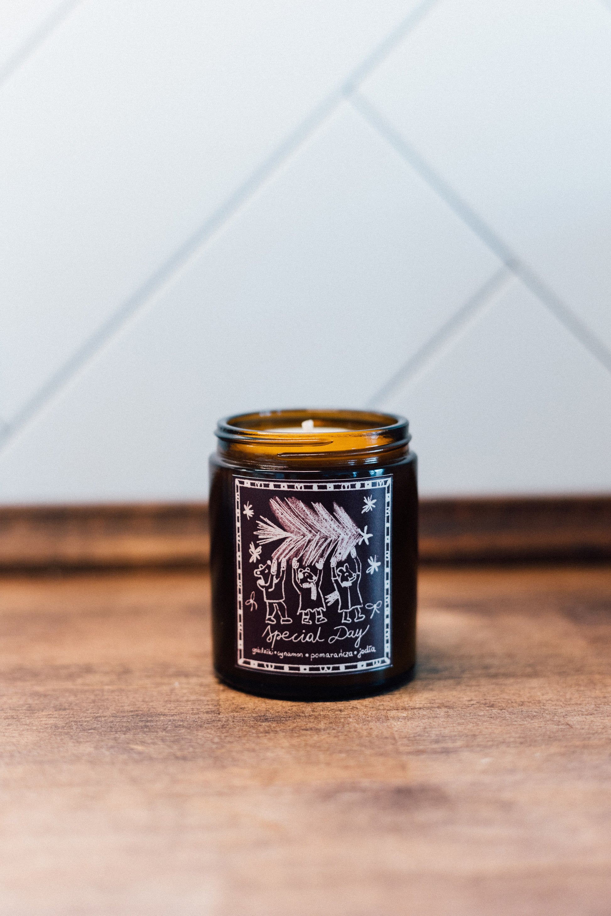 Świeca wchodzi w skład limitowanej serii 5 zapachów, do których etykiety zaprojektowała wspaniała graficzka Zuzanna Jha.